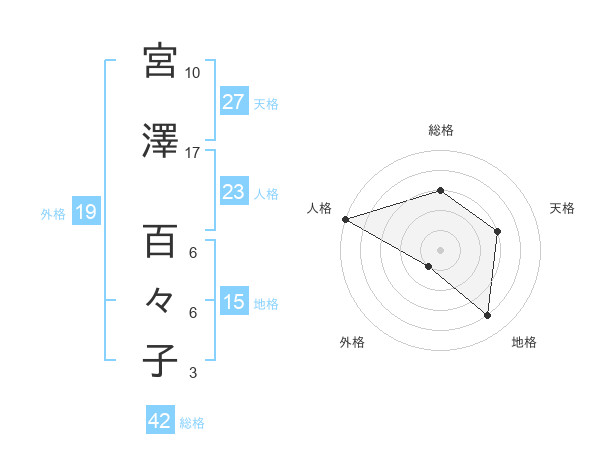 宮澤 百々子さんを姓名の画数から五運を鑑定