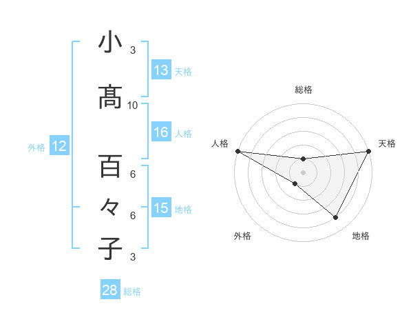 小髙 百々子さんを姓名の画数から五運を鑑定