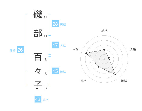 磯部 百々子さんを姓名の画数から五運を鑑定