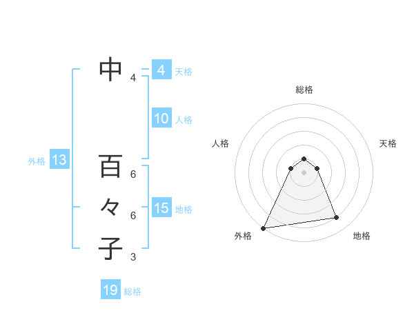 中 百々子さんの外格は13画の5点!