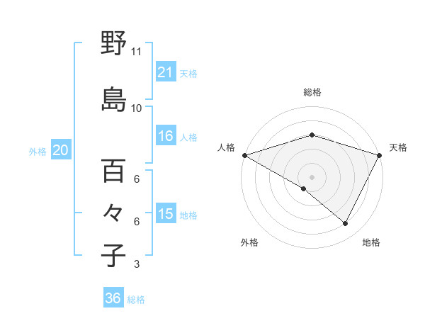 野島 百々子さんの人格は16画の5点