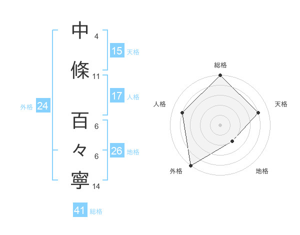 中條 百々寧さんの外格は24画の5点!