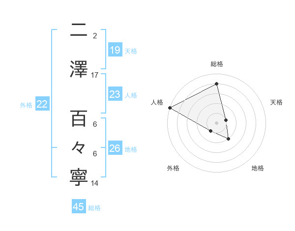 二澤 百々寧さんを姓名の画数から五運を鑑定