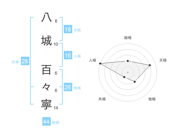 八城 百々寧さんを姓名の画数から五運を鑑定