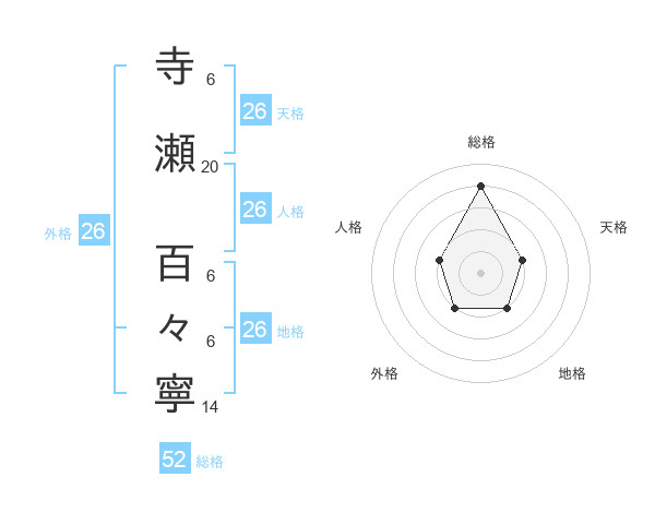 寺瀬 百々寧さんの総格は52画の4点!
