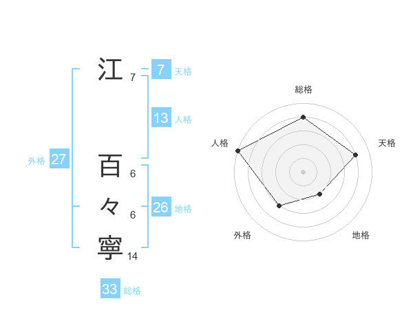 江 百々寧さんの総格は33画の4点!
