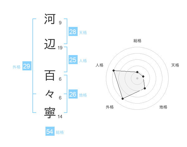 河辺 百々寧さんを姓名の画数から五運を鑑定