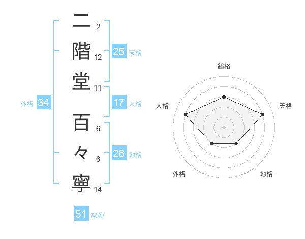二階堂 百々寧さんを姓名の画数から五運を鑑定