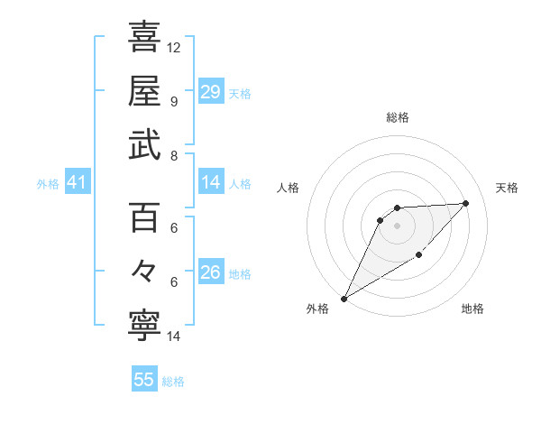喜屋武 百々寧さんの外格は41画の5点!
