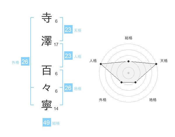 寺澤 百々寧さんを姓名の画数から五運を鑑定