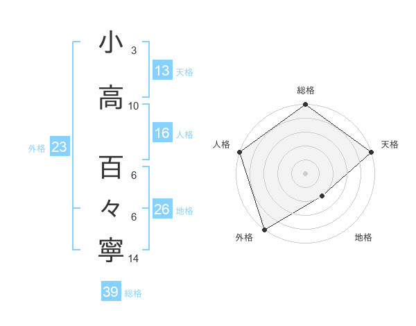 小高 百々寧さんの外格は23画の5点!
