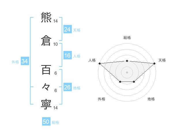 熊倉 百々寧さんを姓名の画数から五運を鑑定