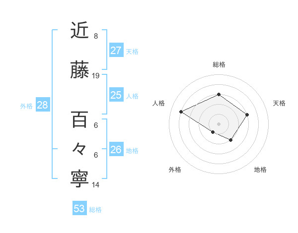 近藤 百々寧さんを姓名の画数から五運を鑑定