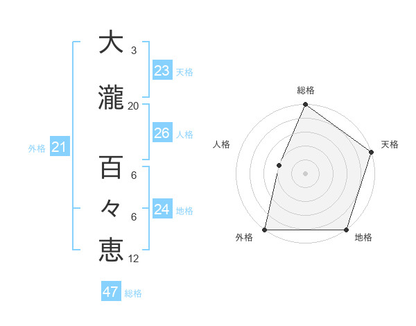 大瀧 百々恵さんを姓名の画数から五運を鑑定