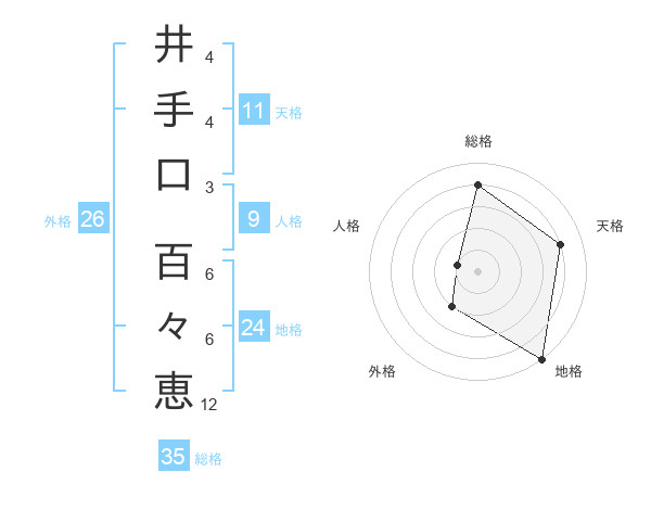 井手口 百々恵さんを姓名の画数から五運を鑑定