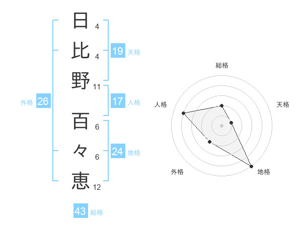 日比野 百々恵さんを姓名の画数から五運を鑑定