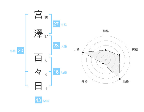宮澤 百々日さんの人格は23画の5点!