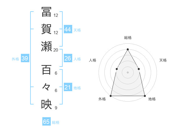 冨賀瀬 百々映さんを姓名の画数から五運を鑑定