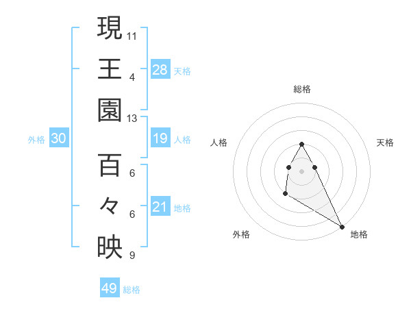 現王園 百々映さんを姓名の画数から五運を鑑定