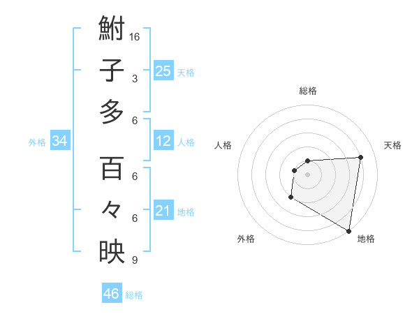 鮒子多 百々映さんを姓名の画数から五運を鑑定