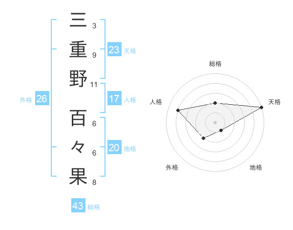 三重野 百々果さんを姓名の画数から五運を鑑定