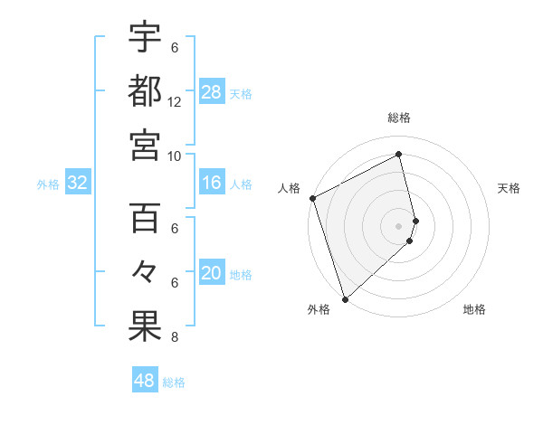 宇都宮 百々果さんを姓名の画数から五運を鑑定