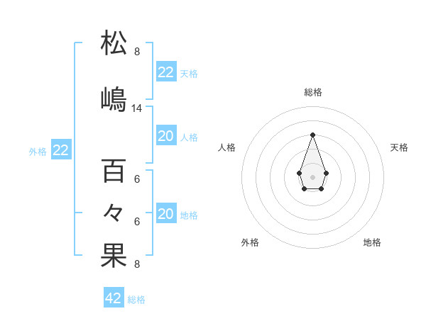 松嶋 百々果さんを姓名の画数から五運を鑑定