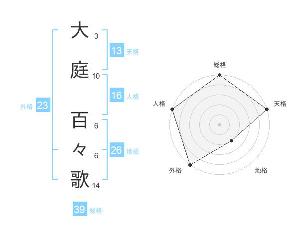 大庭 百々歌さんを姓名の画数から五運を鑑定