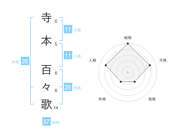 寺本 百々歌さんの総格は37画の5点!