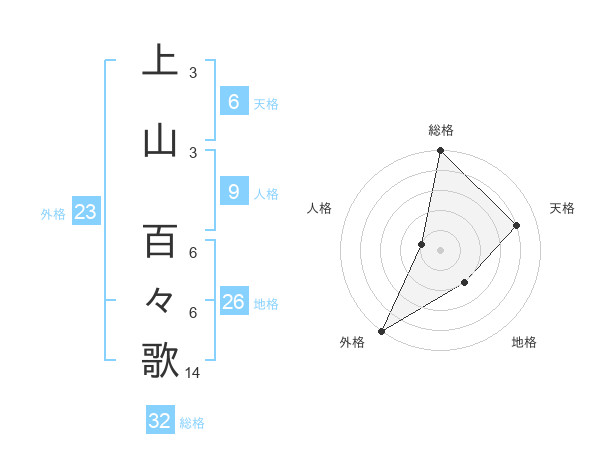 上山 百々歌さんの総格は32画の5点!