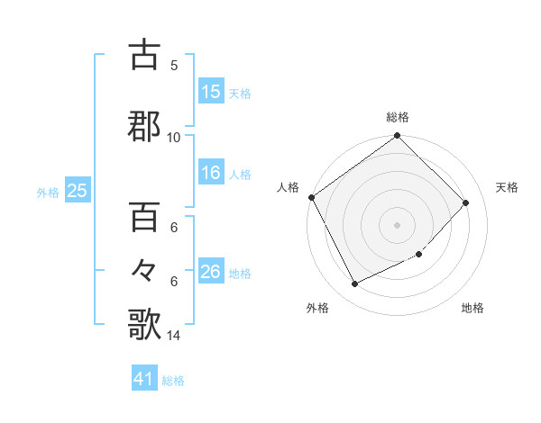 古郡 百々歌さんを姓名の画数から五運を鑑定