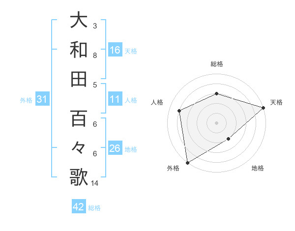 大和田 百々歌さんを姓名の画数から五運を鑑定