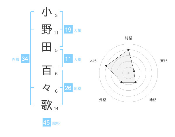 小野田 百々歌さんを姓名の画数から五運を鑑定