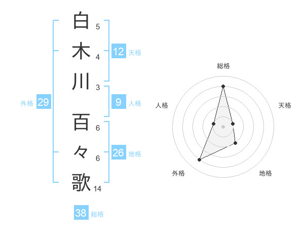 白木川 百々歌さんを姓名の画数から五運を鑑定