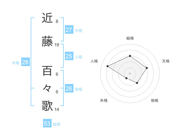 近藤 百々歌さんの総格は53画の3点
