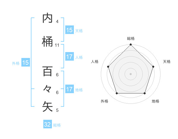 内桶 百々矢さんを姓名の画数から五運を鑑定