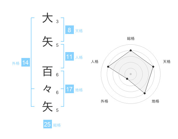 大矢 百々矢さんを姓名の画数から五運を鑑定