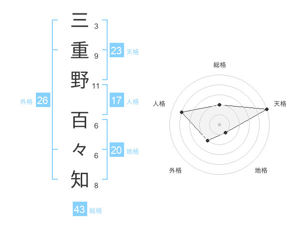 三重野 百々知さんを姓名の画数から五運を鑑定