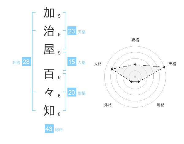 加治屋 百々知さんの天格は23画の5点