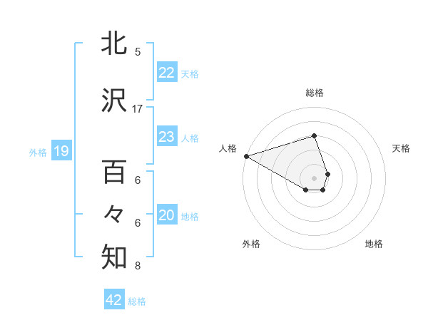 北沢 百々知さんの地格は20画の1点!