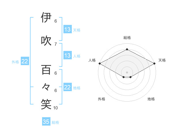 伊吹 百々笑さんを姓名の画数から五運を鑑定
