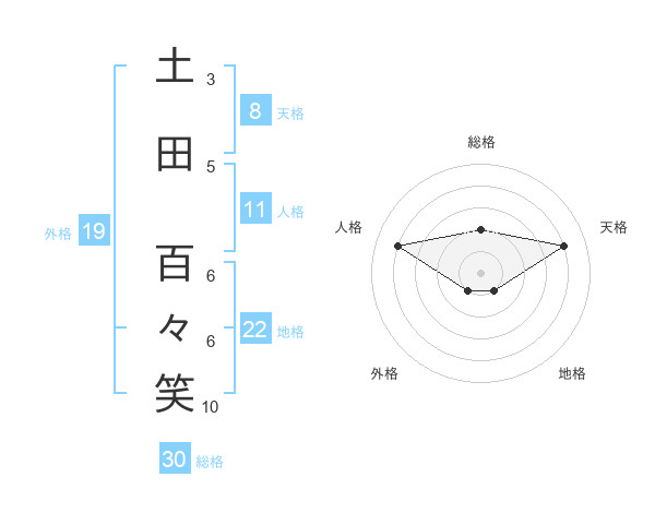 土田 百々笑さんを姓名の画数から五運を鑑定