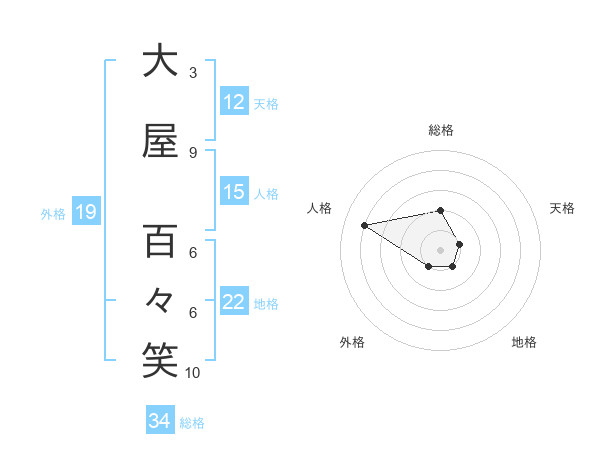 大屋 百々笑さんを姓名の画数から五運を鑑定