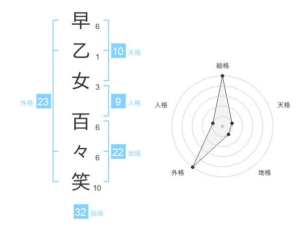 早乙女 百々笑さんの総格は32画の5点!