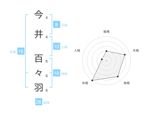 今井 百々羽さんを姓名の画数から五運を鑑定
