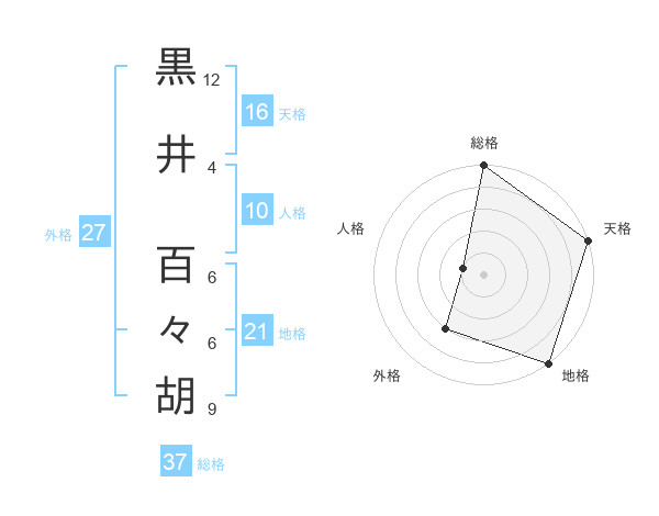 黒井 百々胡さんの総格は37画の5点!