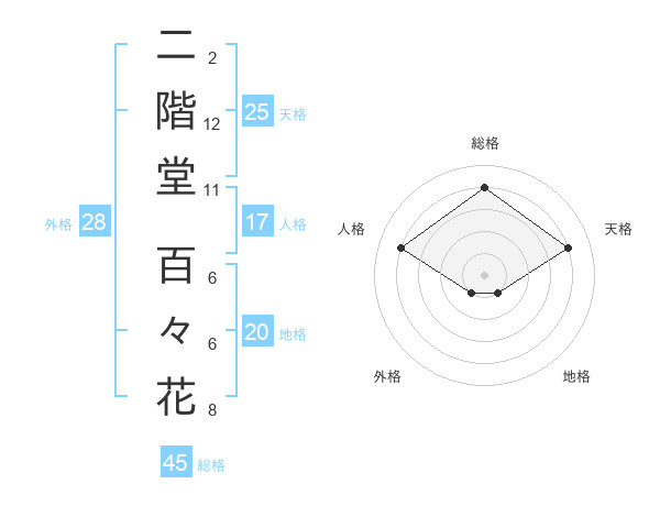 二階堂 百々花さんを姓名の画数から五運を鑑定