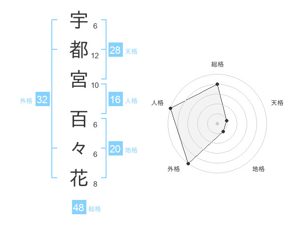 宇都宮 百々花さんを姓名の画数から五運を鑑定