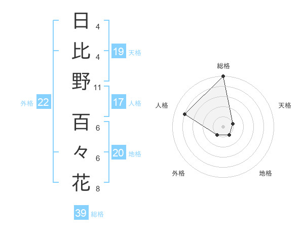 日比野 百々花さんを姓名の画数から五運を鑑定