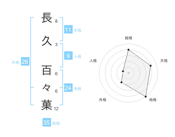 長久 百々菓さんを姓名の画数から五運を鑑定